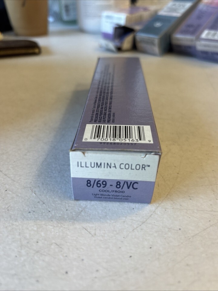 Wella Illumina Permanent Hair Color 8/69-8/VC Light Blonde/Violet Cendre, 2 oz. NOTE : ALL PRODUCT MANUFACTURES ALWAYS UPDATE THE PACKAGING FROM TIME TO TIME SO IF U GET SOMETHING THAT LOOKS DIFFERENT FROM PICTURE IS JUST MEANS U ARE GETTING THE NEWEST AND UP TO DATE LOOK NOTE: ALL PRODUCTS ON OUR SITE ARE UP TO DATE MANUFACTURES FROM TIME TO TIME CHANGE THERE PACKAGING SO IF U GET SOMETHING THAT DOEST NOT MATCH THE PICTURE IT JUST MEANS THEY CHANGED THE PACKAGING AND WE ONLY SELL UP TO DATE AND BRAND NEW PRODUCTS